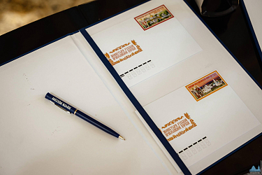 Оттиск специального штемпеля первыми на марки поставили временно исполняющий обязанности губернатора Курской области Александр Хинштейн, настоятель Горнальского Белогорского монастыря игумен Питирим (Плаксин), исполняющая обязанности директора УФПС Курской области Светлана Картамышева.