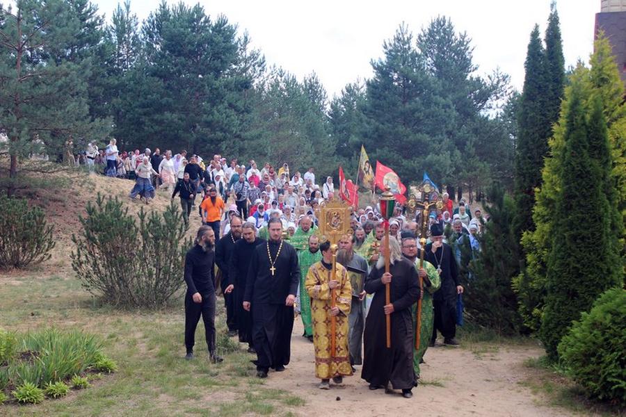Наместник монастыря игумен Аристарх (Дроздов) с братией вышли встречать крестоходцев на мосту, ведущему в обитель. По многолетней традиции паломники установили на территории монастыря памятный крест, который несли с собой из Новогрудка.
