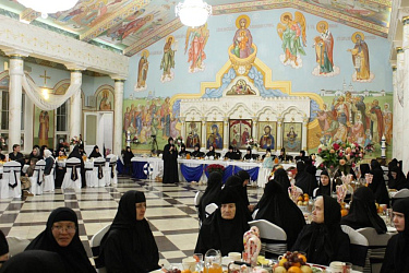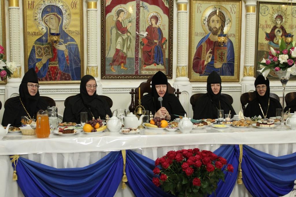 Тожественное открытие Чтений с Пленарным заседанием и большинством секций запланированы на 25 декабря, но на праздник Святителя Николая в обитель приехали на престольный праздник бывшие сестры монастыря – нынешние игумении и настоятельницы четырнадцати женских обителей – монастырей, скитов и подворий в Калужской, Козельской, Саратовской, Кемеровской епархиях.