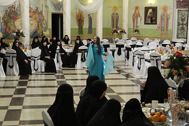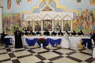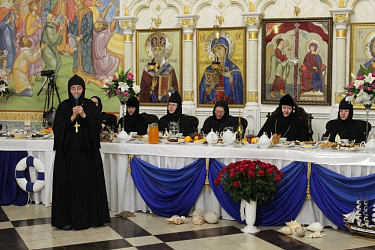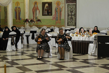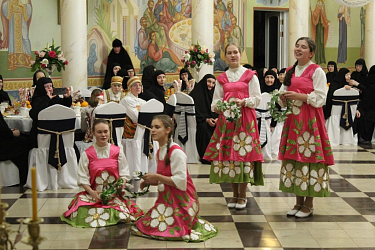 После завершения обсуждения докладов круглого стола воспитанницы пансиона «Отрада» представили праздничный концерт для собравшихся сестер и настоятельниц женских монастырей. Завершился праздник подарками и поздравлениями настоятельницы Свято-Никольского Черноостровского женского монастыря с престольным праздником обители и днем ангела.