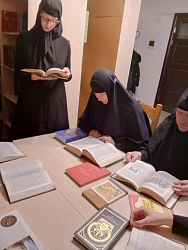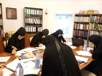 Слушательницы курсов этого потока – сестры из Успенского Феклиной пустыни, женского монастыря в честь святых жен-мироносиц Козельской епархии и послушницы из Свято-Никольского Черноостровского женского монастыря.