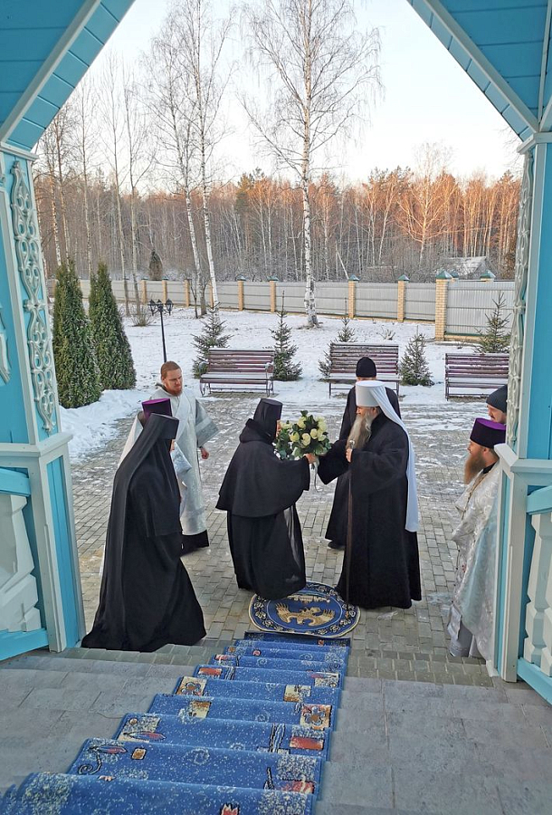 Затем митрополит Георгий поздравил всех с днем освящения еще одного престола Божия и обратился к собравшимся с архипастырским словом сказав, что главный труд монаха и мирянина – молитва, без которой нет духовной жизни. Если человек молится, то вражья сила отступает. Также владыка отметил, что новый придел посвящен именно Собору Дивеевских святых, которые подвизались на святой Саровской и Дивеевской земле.