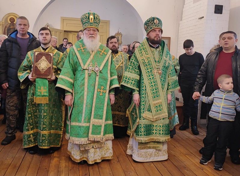 Его Высокопреосвященству сослужили епископ епископ Юрьевский Арсений, викарий Новгородской епархии, протоиерей Александр Фролов и иерей Николай Полозов.