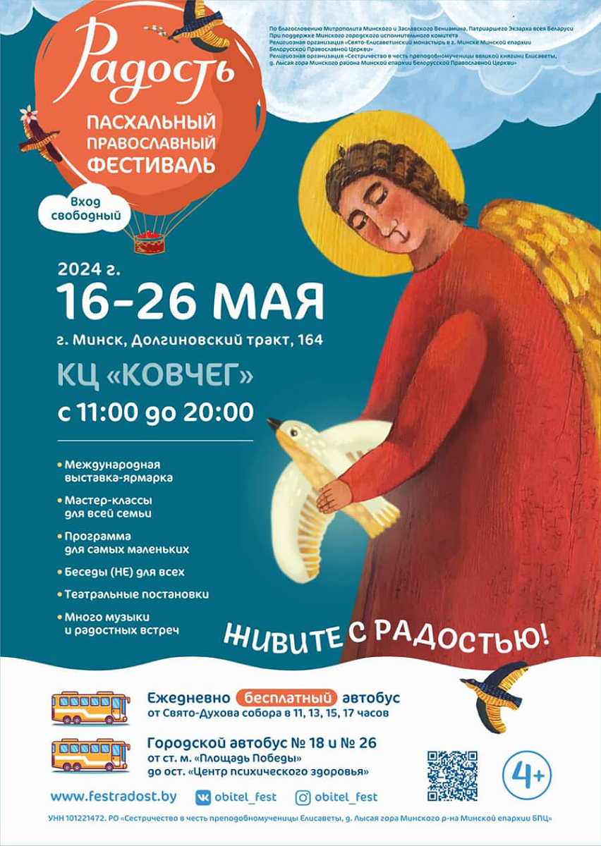 16 мая 2024 года в Минске в культурном духовно-просветительском центре «Ковчег» Елисаветинского женского монастыря открылся Пасхальный фестиваль «Радость».