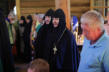 За богослужением молилась настоятельница Среднеуральского женского монастыря в честь иконы Божией Матери «Спорительница хлебов» игумения Варвара (Крыгина) с сестрами обители.
