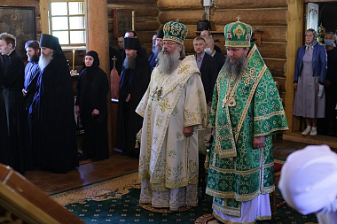 Архипастырям сослужили: секретарь епархиального управления Екатеринбургской епархии иеромонах Кирилл (Корытко), исполняющий обязанности наместника мужского монастыря во имя святых Царственных страстотерпцев в урочище Ганина Яма иеромонах Мелитон (Зыбин) с братией обители в священном сане и духовенство Екатеринбургской епархии.