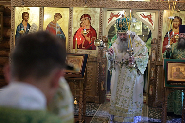 По окончании праздничного богослужения владыка Кирилл преподал молящимся архипастырское благословение, поздравив всех с днем обретения святых мощей Серафима Саровского.