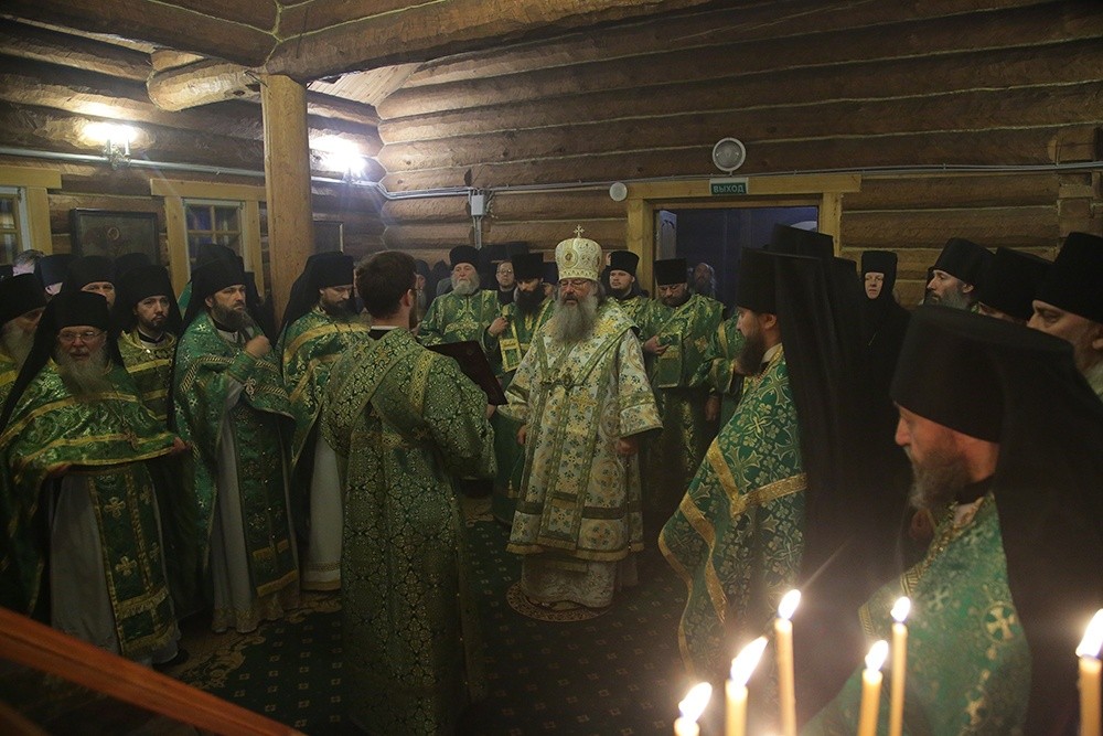 Его Высокопреосвященству сослужили: наместник Верхотурского Свято-Николаевского монастыря игумен Иероним (Миронов), наместник Крестовоздвиженского мужского монастыря Екатеринбурга игумен Флавиан (Матвеев), ректор Екатеринбургской духовной семинарии иеромонах Корнилий (Зайцев), исполняющий обязанности наместника мужского монастыря во имя святых царственных страстотерпцев в урочище Ганина Яма иеромонах Мелитон (Зыбин), секретарь епархиального управления Екатеринбургской епархии иеромонах Кирилл (Корытко), братия обители в священном сане, а также монашествующие священнослужители, несущие послушания на приходах Екатеринбургской епархии.
