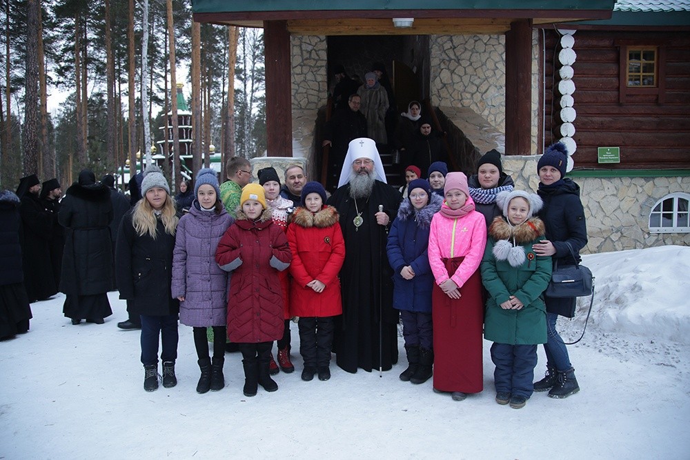 В завершение митрополит Кирилл пообщался с воспитанниками детской волейбольной спортивной школы «Энергия» (Среднеуральск), которые присутствовали на Литургии. По благословению Его Высокопреосвященства дети ознакомились с Экспозиционно-выставочным центром обители и монастырской фермой.