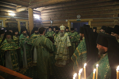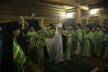 Накануне Его Высокопреосвященство отслужил всенощное бдение в монастырском храме во имя преподобного Серафима Саровского.