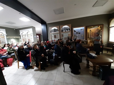 Собравшимся представителям профессионального сообщества была представлена экскурсия по обители, включающая в себя также посещение монастырского музея. Участников мероприятия особенно интересовала презентация юбилейной программы, так как гости монастыря из разных городов России, ближнего и дальнего зарубежья часто обращаются к ним за помощью в проведении экскурсии на этом известном месте.