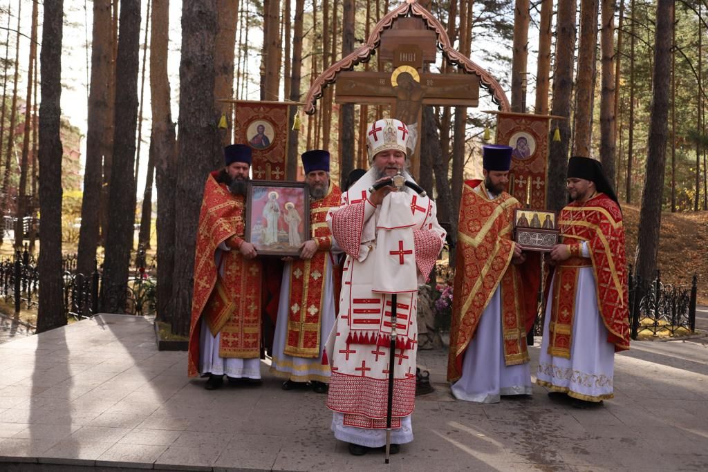 У шахты митрополитом Евгением и духовенством был совершен молебен. Под пение Херувимской песни было совершено каждение вокруг шахты, ставшей ныне местом притяжения паломников.