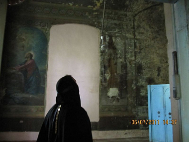 Не так давно обители был возвращен величественный Тихвинский храм, в котором в предыдущие годы находился местный архив. Кроме работ ремонтно-реставрационного характера на здании самого храма в честь Тихвинской иконы Божией Матери, была предпринята попытка приступить к противоаварийным и консервационным работам по монументальной живописи в алтаре церкви. Работы оказались плодотворными: удалось открыть росписи: и первоначальные, клеевые, и более поздние, масляные. Это очень кропотливая дорогостоящая работа, но очень важная для приготовления храма к богослужениям. Впоследствии художники-реставраторы будут еще «освежать» росписи и восстанавливать все их утраченные фрагменты.