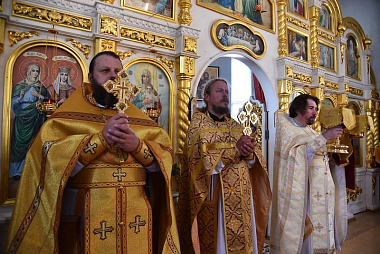 Божественную литургию возглавил настоятель монастыря игумен Кирилл (Никитин) в сослужении насельников обители – иеромонахов Христофора (Савельева) и Павла (Дударова).