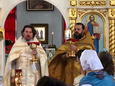 Из-за большого количества желающих приобщится Святых Христовых Таин причащение осуществлялось из двух чаш.