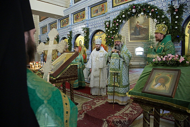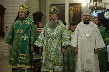 Его Высокопреосвщенству сослужили архипастыри епископ Серовский и Краснотурьинский Алексий и епископ Алапаевский и Ирбитский Леонид, а также наместник Царской обители игумен Леонтий (Козлов), секретарь епархиального управления Екатеринбургской епархии иеромонах Кирилл (Корытко), благочинный обители иеромонах Иов (Чумаченков), братия монастыря в священном сане и клирики Екатеринбургской митрополии.