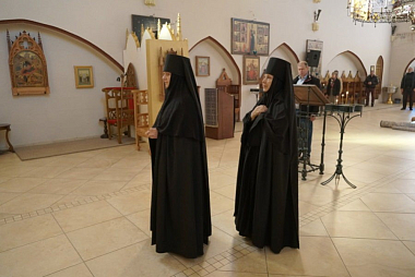 За богослужением молилась настоятельница обители игумения Феодосия (Изгина) с сестрами.