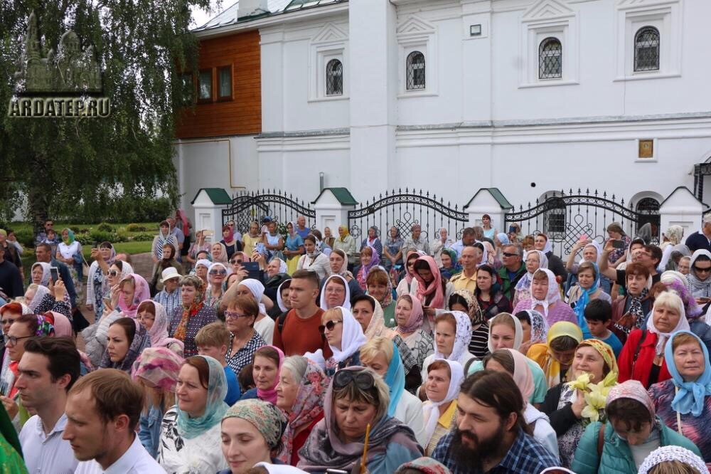 На территории монастыря и на площади Крестьянина за монастырскими стенами у памятника святым Петру и Февронии молились многочисленные жители города и паломники. Для удобства верующих богослужение транслировалось на больших экранах, установленных на площади. На телеканале «Союз» шла прямая трансляция богослужения.