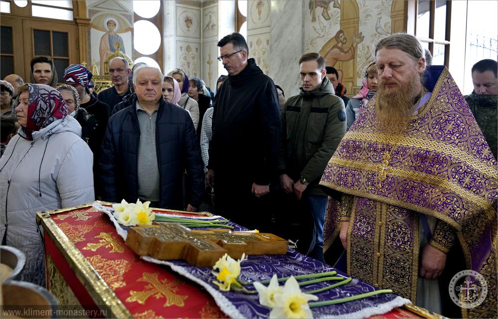 Всенощное бдение и Литургию возглавил благочинный Свято-Климентовского монастыря иеромонах Авель (Василенко).
