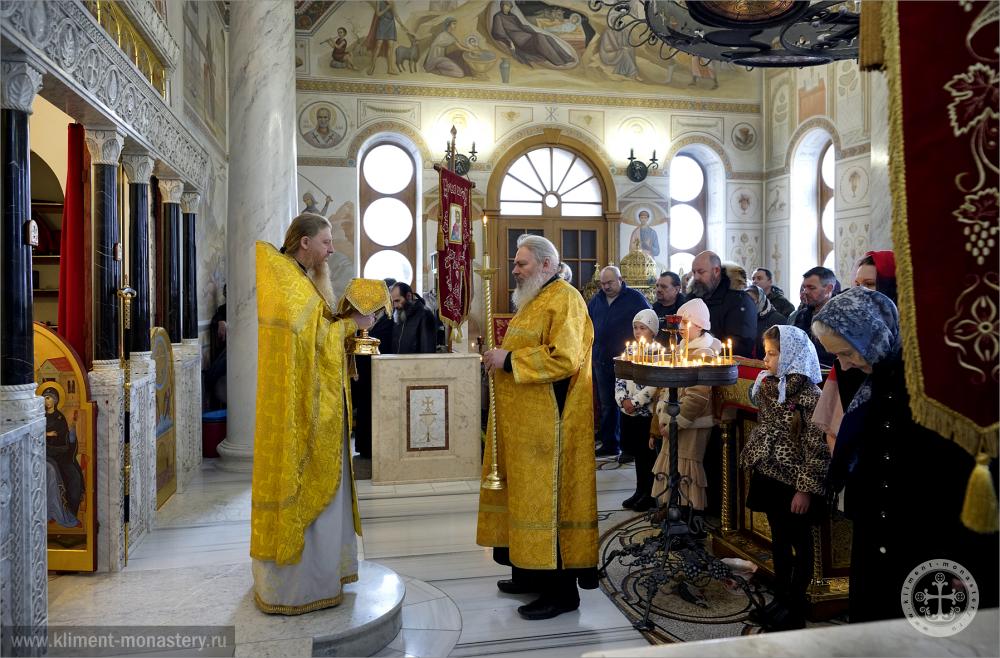 Всенощное бдение и Божественную литургию в Пантелеимоновском храме обители совершил благочинный иеромонах Авель (Василенко). Таинство исповеди – иеромонах Аристарх (Сащенко).