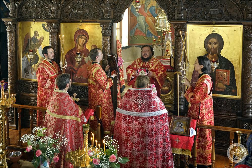 Его Преосвященству сослужило духовенство монастыря.