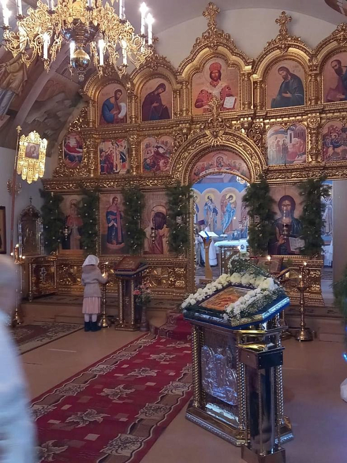 По окончании Литургии Преосвященнейший владыка поздравил игумению Веру с днем рождения и обратился к молящимся в храме с проповедью.