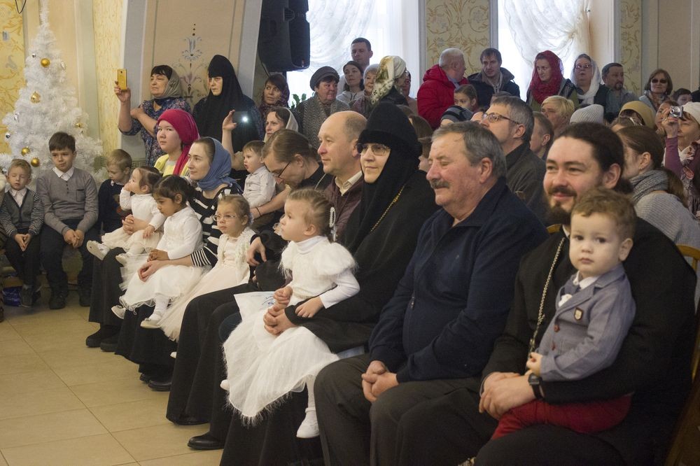 Днем состоялись праздничный концерт и спектакль. Воспитанницы «Доброй школы на «Сольбе» – малыши из детского сада, школьницы, ученицы колледжа – стремились поделиться рождественской радостью с гостями обители.
