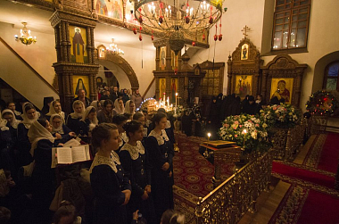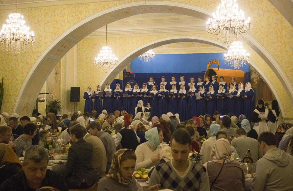 По окончании Литургии ее участникам была предложена праздничная трапеза, во время которой детский хор исполнял старинные рождественские колядки и канты.
