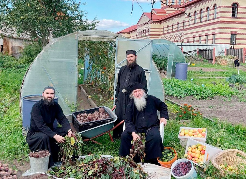 Сейчас братия занята сбором последнего урожая помидоров и перцев в теплице.