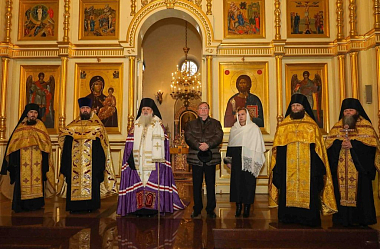Его Преосвященству сослужили настоятель обители игумен Евмений (Лагутин) с братией и благочинный церквей Богородского округа Московской областной епархии протоиерей Марк Ермолаев.