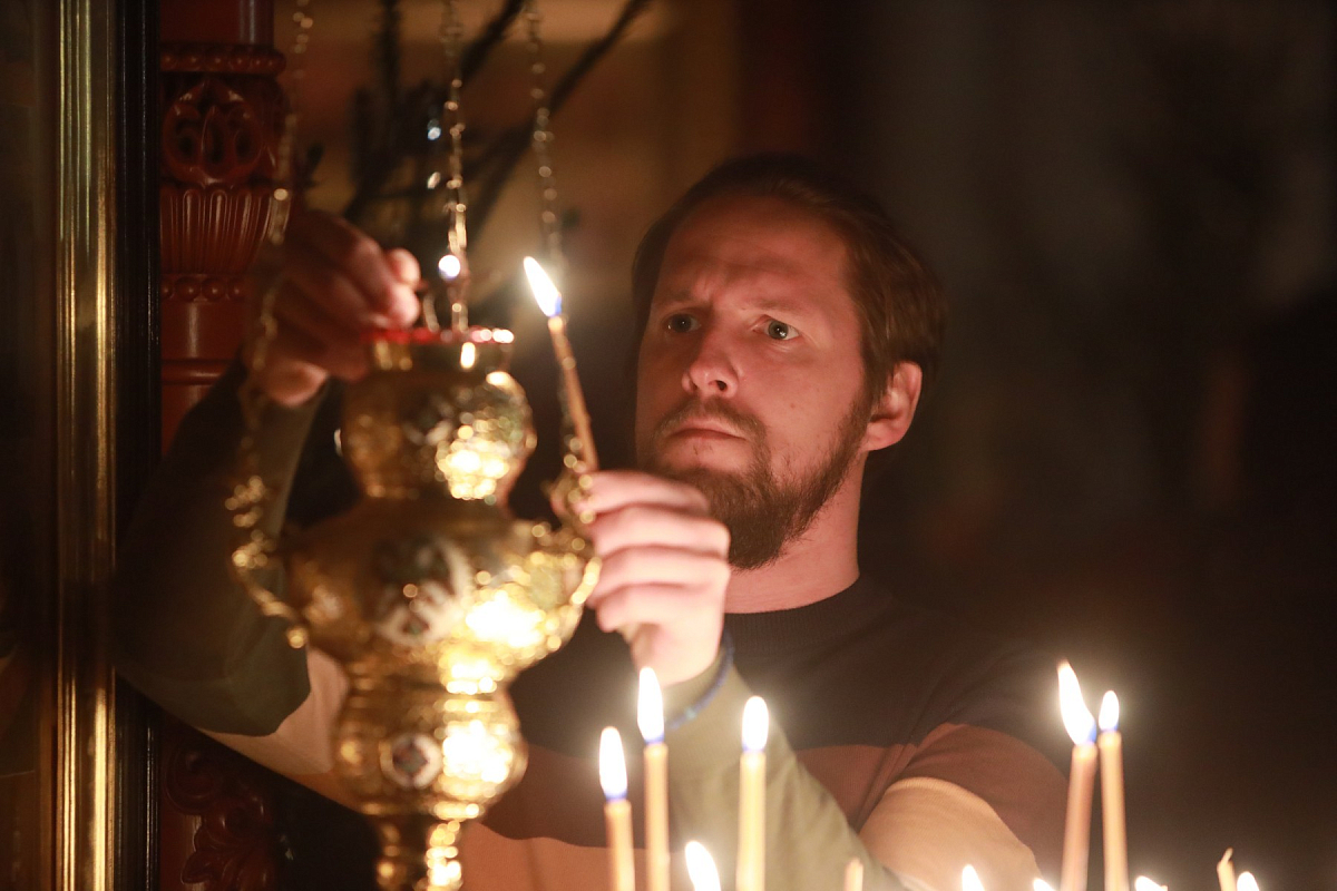 Накануне в Троицком соборе обители была отслужена великая вечерня.