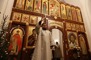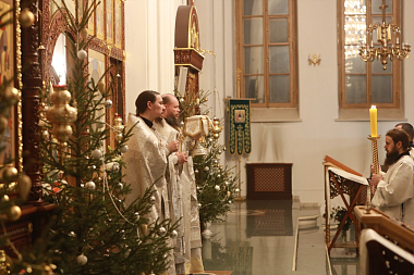 По окончании Литургии было зачитано Рождественское послание Святейшего Патриарха Московского и всея Руси Кирилла архипастырям, пастырям, диаконам, монашествующим и всем верным чадам Русской Православной Церкви.