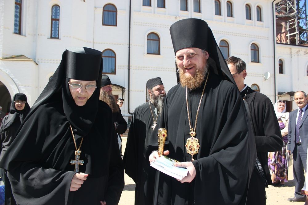 На центральной аллее перед Успенским храмом монастыря расположилась большая фотовыставка, посвященная 20-летнему юбилею обители. Здесь в старых и новых фотографиях можно было проследить основные вехи возрождения и становления обители на непростом пути длиной в 20 лет.