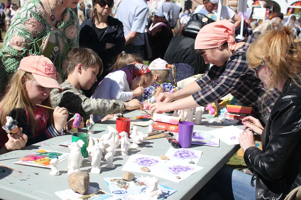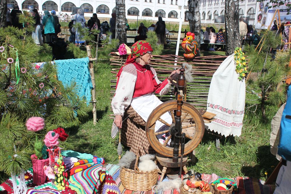 В тихом живописном уголке монастырской территории рядом с деревянным храмом преподобного Сергия Радонежского расположились на пленере художники, а возле пруда развернулись многочисленные и разнообразные мастер-классы народных промыслов и ремесел, поучиться которым могли все желающие.