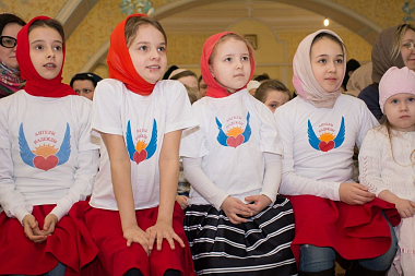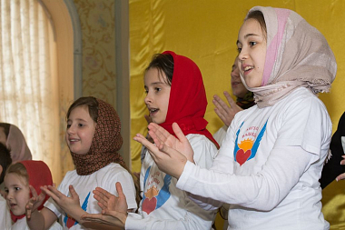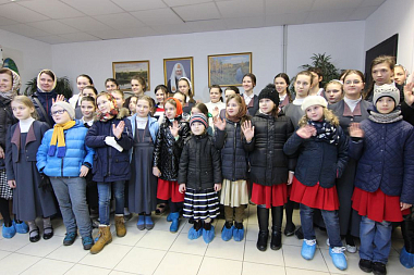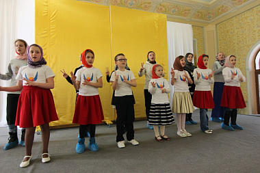 Юные артисты выступили перед сестрами, воспитанницами «Доброй школы на Сольбе» и гостями монастыря с небольшим концертом. Все слышали звукозапись песен, а дети синхронно исполняли их на языке жестов и танцевальных движений.