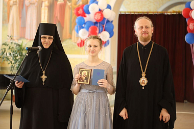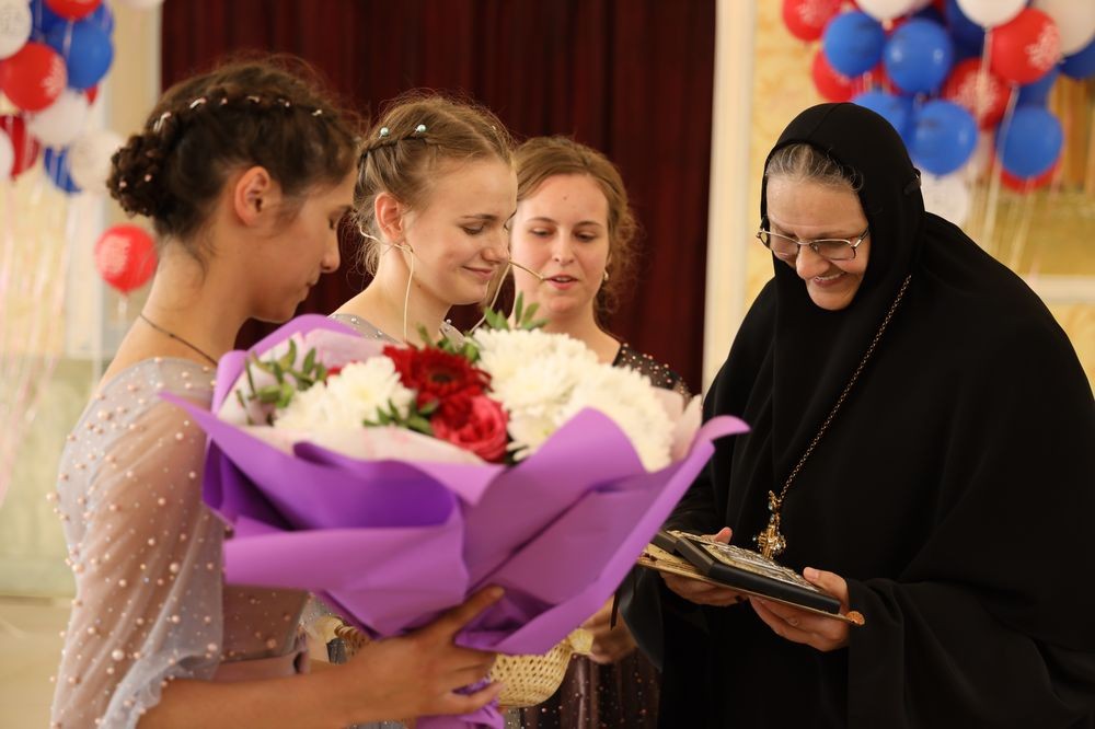 – Сегодня для всех нас, особенно для наших выпускниц, большой праздник. Они выходят из стен школы, где столько лет не просто учились, но и жили. Наша школа отличается тем, что девочки здесь живут, это их дом на протяжении многих лет. В этом году у нас десятый выпуск из общеобразовательной школы «Добрая школа на Сольбе» и первый выпуск колледжа. Мы с сестрами от всей души поздравляем всех выпускниц, наших родных девочек, с завершением учебы. Для нас это торжественный день, одновременно и грустный, и радостный. Хочу пожелать им быть смелыми, добрыми, отзывчивыми, такими, какими вы были у нас. Умножайте свои таланты. Вы очень талантливые, очень любимые нами, и мы всегда будем молиться за вас, как молимся за всех наших выпускниц. Божией помощи, дорогие девочки!