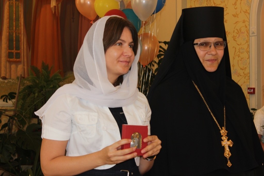 Епископ Феодор наградил игумению Еротииду юбилейным крестом в память 400-летия преставления прп. Иринарха Затворника и ценным подарком. Директора и педагоги школ также были поощрены благодарственными письмами и памятными наградами.