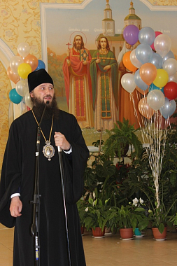 Открыл праздник епископ Переславский и Угличский Феодор. Его Преосвященство поздравил выпускников с окончанием школы, высказал наилучшие пожелания и дал мудрые советы и наставления, подкрепив их яркими примерами. В своем напутствии владыка говорил о том, как важно выбрать спутника жизни, ведь он должен быть не столько внешне красивым, умным, богатым, сколько порядочным и надежным – человеком, на которого можно положиться в трудную минуту, а жизнь можно сравнить с восхождением в горы, где главный ориентир – Евангелие, Слово Божие.