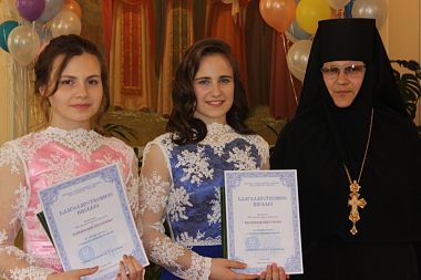 В монастырском храме Успения Пресвятой Богородицы был отслужен благодарственный молебен, затем все собрались в Варваринской трапезной обители на церемонию вручения аттестатов и заслуженных наград.