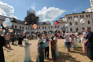 Красивым и немного грустным «Школьным вальсом» завершилась торжественная часть праздника. На улице всех гостей ожидали праздничная трапеза и живая музыка. По традиции все выпускники и гости выпустили в небо воздушные шары. Небо над обителью украсилось сотнями ярких точек, унесших с собой чьи-то заветные желания.