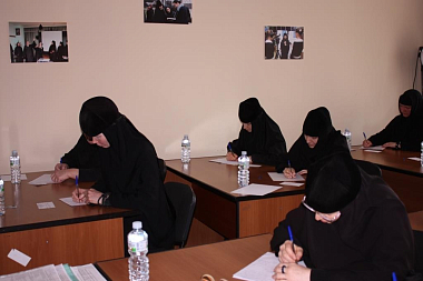 Сестры четырех женских монастырей и пяти подворий, многие из которых уже не одно десятилетие подвизаются на монашеском поприще, сдавали экзамен, отвечали на билеты перед настоятельницами: Казанского девичьего монастыря игуменией Анастасией (Мордмиллович), женского монастыря в честь Калужской иконы Божией Матери игуменией Параскевой (Ляховой) и Свято-Успенского Лихвинского женского монастыря игуменией Михаилой (Осиповой).