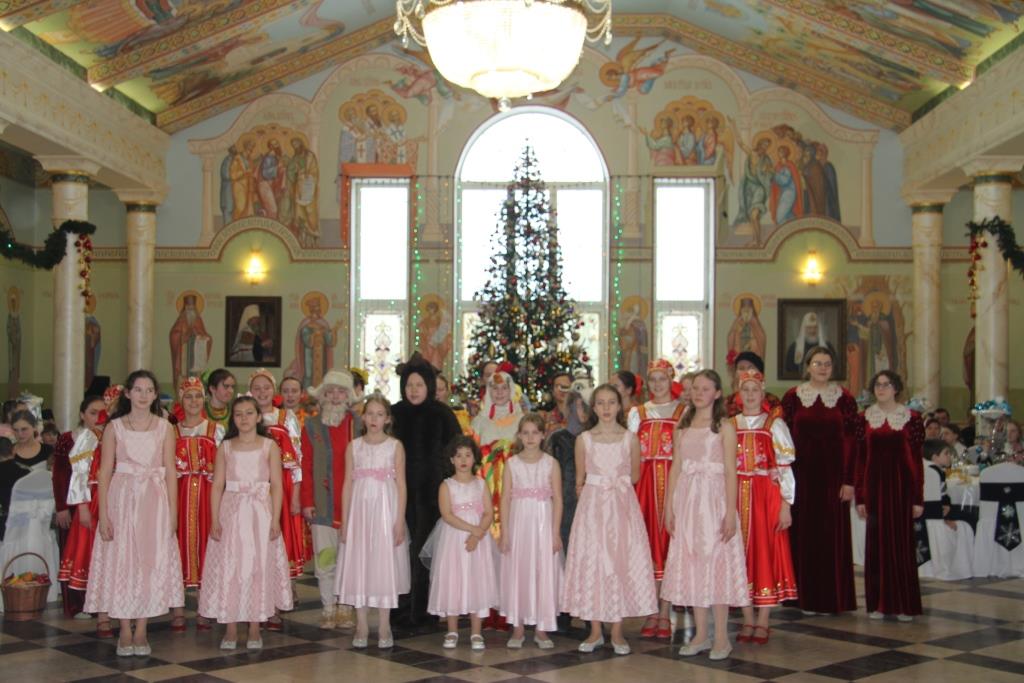 После трапезы и чтения начался концерт музыкального коллектива «Отрада», начавшийся с хороводов «Снежная вьюга» под музыку С. Рахманинова и «Снежных узоров» под народную русскую мелодию. «Зимние забавы», «Русская метелица», «Кабы не было зимы», песни «Сверчок» и «Подари Рождество», «Весенний хоровод» на музыку из балетной сюиты П.И. Чайковского «Снегурочка». Во время финальной песни – «На Рождество мы вам желаем добра» – сестры монастыря вынесли еще Рождественские подарки и раздали всем детям в зале. Далее гостей ждал еще один подарок – экскурсия по монастырю, духовно-просветительскому центру «София», интерактивному музею «Малоярославец – город двух великих побед», созданному при финансовой поддержке Фонда президентских грантов, Центру православных медиа со школой детского телевидения «София».