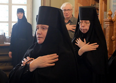 За богослужением молились и причащались Святых Христовых Таин настоятельница Никольской обители игумения Евстолия (Афонина) с сестрами.