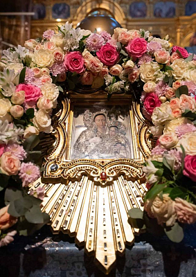 Список Козельщанской иконы Божией Матери является главной святыней Никольского мужского монастыря и установлен над Царскими вратами Никольского храма обители.