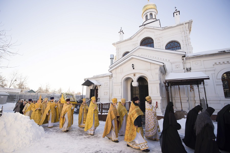 По окончании богослужения состоялся крестный ход вокруг Никольского храма обители.