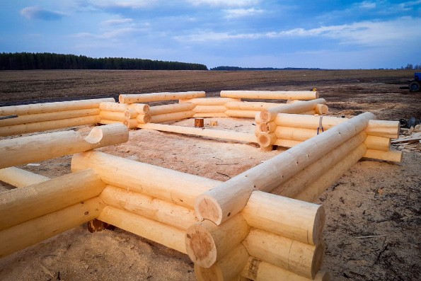 Изготовлением сруба занимается бригада из семи человек. Он будет готов примерно через полтора месяца.