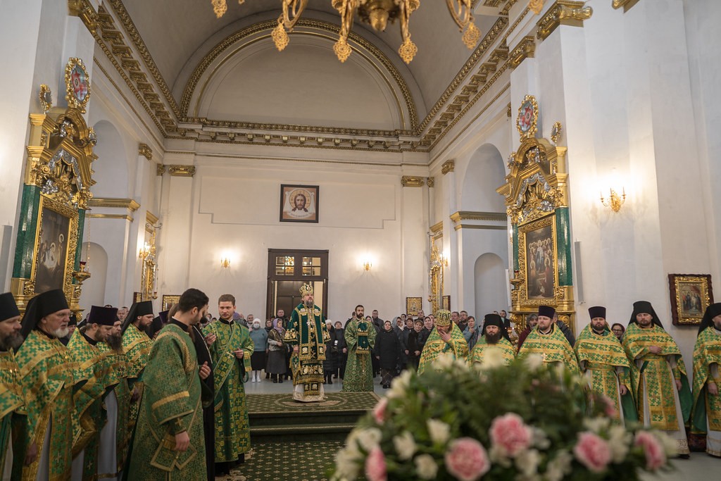 Во время сугубой ектении диакон произнес особые прошения о восстановлении мира и об Отечестве, а после иеромонах Фаддей (Пестов), духовник обители, прочитал молитву о восстановлении мира.