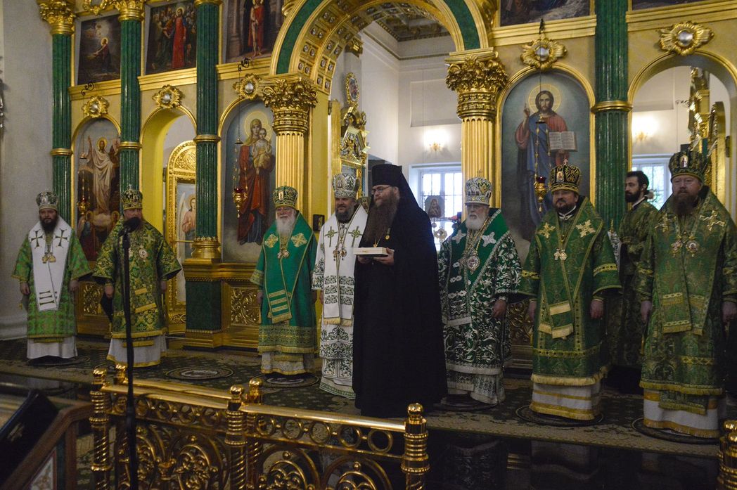 По окончании Литургии Высокопреосвященный владыка Амвросий поздравил архипастырей, духовенство, паломников и гостей с главным праздником обители – днем памяти преподобного Нила, святого отшельника, благодаря которому на острове Столобный возникла монашеская жизнь. А также вручил награды: