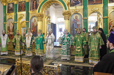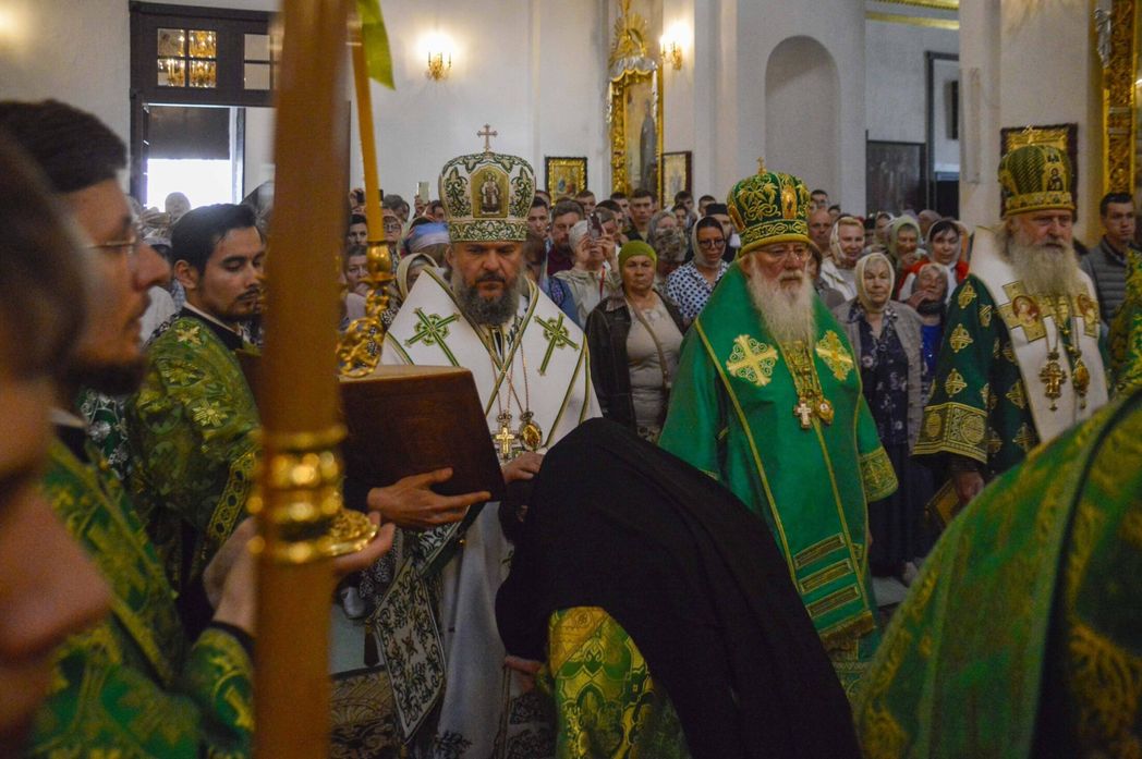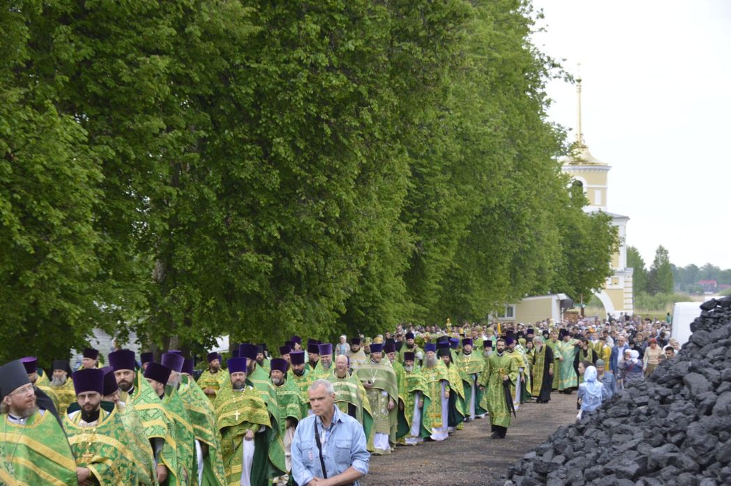 Божественную литургию возглавил священноархимандрит монастыря митрополит Тверской и Кашинский Амвросий. Ему сослужили митрополит Новгородский и Старорусский Лев; митрополит Виктор (Олейник); митрополит Каширский Феогност, председатель Синодального отдела по монастырям и монашеству, наместник Донского ставропигиального монастыря Москвы; архиепископ Якутский и Ленский Роман, архиепископ Горно-Алтайский и Чемальский Каллистрат, епископ Бежецкий и Удомельский Филарет, епископ Джакартский Питирим; секретарь Тверской епархии, настоятель Николо-Малицкого монастыря игумен Борис (Тулупов), наместник Нило-Столобенской пустыни иеромонах Гавриил (Баглай), братия обители в священном сане, а также священнослужители из других епархий.