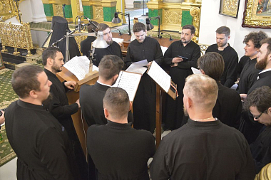 Божественные песнопения исполнил хор храмового комплекса Новомучеников и исповедников Российских села Санино под руководством Ильи Капрелянца.